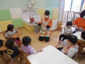 季節の絵本や、地震のお話、歯ブラシのお話、お約束を守ることを教えてくれるお話