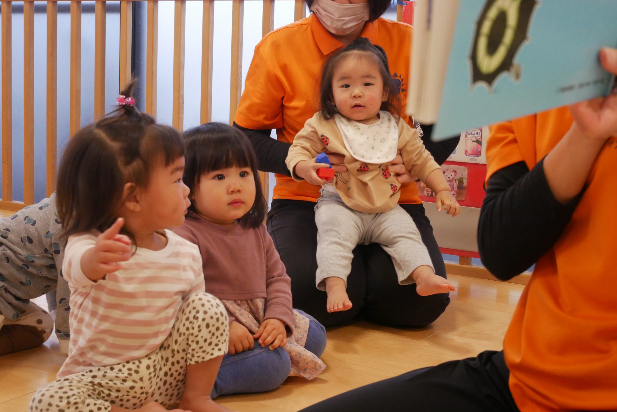 もも組さんやいちご組さんもお座りして静かに絵本を楽しんでいましたよ✨