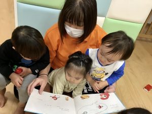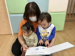 絵本を見ながら『だいじょうぶ?』や絵本をいい子、いい子してあげたり