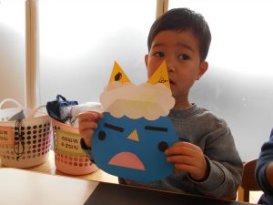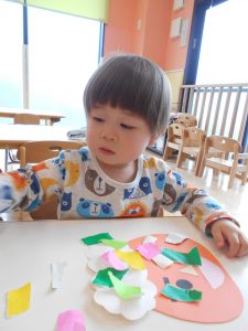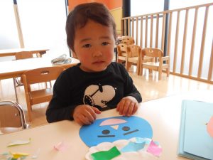 保育士が作った見本を見ながら、自分で考えて顔のパーツを貼りました![]()