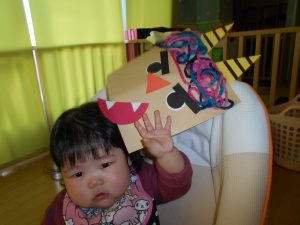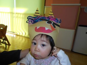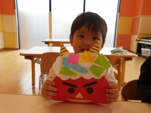 完成したオニは0歳児の保育室に貼ってありますので、ぜひご覧になってくださいね![]()
