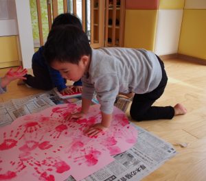 大きな桜の木に手形をペタペタ![]()