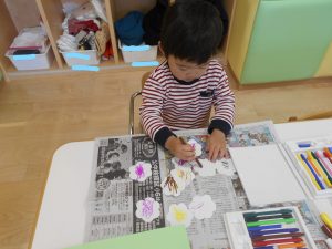自分で選んだ色でお花をかわいく色づけしてくれました![]()