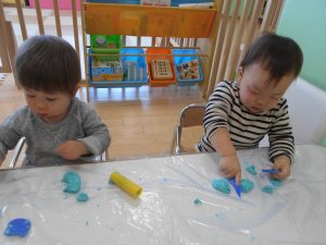 粘土遊びもだんだん上手になってきているいちご組さんです![]()