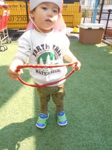 園庭では、お友達みんなと一緒に走ったり、フープをハンドルに見立てて車ごっこを楽しんだりしました![]()