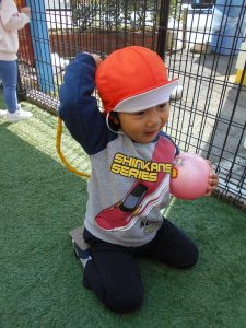 ボールを追いかけるのが楽しいようで、保育士にボールをパスしては、「まってー!!」と追いかけてきてくれます![]()
