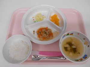 2019.06.12|給食ピックアップ 6月12日 今日の献立? ・ご飯 ・チキンと野菜のケチャップ煮込み ・粉ふきいも ・オレンジ ・味噌汁 ・軟飯 ・ツナ煮込み ・粉ふきいも ・オレンジ ・味噌汁 前へ 次へ
