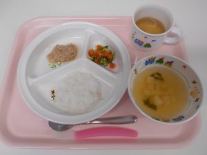 おかゆ・味噌汁・ツナの甘酢かけ・おかか和え