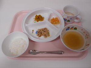 2019.07.05|給食ピックアップ 7月5日 今日の献立? ご飯・味噌汁・鶏肉のマーマレード焼き・七夕サラダ・かぼちゃの甘辛煮 軟飯・味噌汁・鶏肉マーマレード焼き・七夕サラダ・かぼちゃの甘辛煮 前へ 次へ