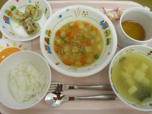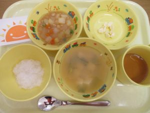 ご飯 味噌汁 ちくわの磯辺揚げ そぼろ煮 チーズ