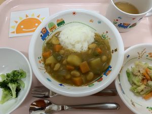 ご飯 大豆のカレー ツナサラダ ブロッコリーの甘酢和え