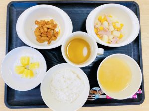 ※ケチャップの味付けは人気です。よく煮込んだ鶏肉はやわらかくなり美味しくなります♪今日もみんな完食でした!