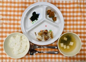 (写真は普通食になります。年齢によって盛り付け量を変えて、提供しています。)