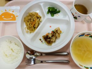 ご飯 味噌汁 鮭のごまマヨネーズ焼き 切り干し大根の煮物 いんげんのしお茹で