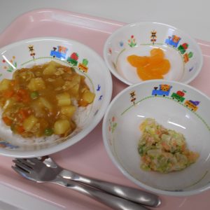 ・食パン ・クリームシチュー ・キャベツの味噌ドレサラダ ・みかん缶