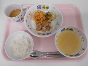 ご飯 みそ汁 鶏肉のマーマレード焼き スパゲッティ 含め煮