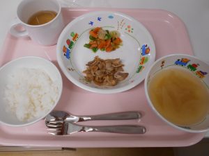 ・ごはん ・みそ汁 ・豚肉のみそ焼き ・八宝菜風