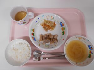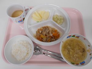 ご飯 味噌汁 すき焼き風煮 粉ふき芋 りんご