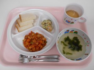 ・食パン ・わかめスープ ・ポークビーンズ ・ツナサラダ