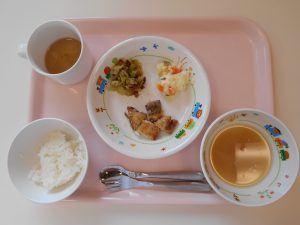 ご飯 味噌汁 魚の唐揚げ ポテトサラダ おかか和え