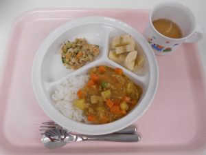ご飯 カレーシチュー 切干大根のサラダ バナナ