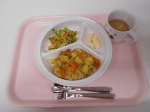 ・ご飯 ・チキンと野菜のケチャップ煮込み ・粉ふきいも ・オレンジ ・味噌汁 ・軟飯 ...