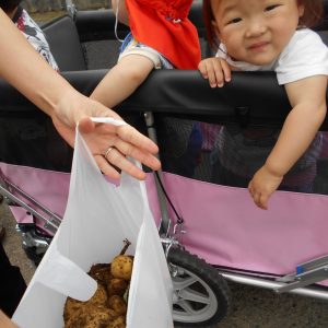 近所の畑を通る時にはいつも「何が出来るかな~?」「ナスかなー?」「サツマイモかな?」「あっ!!ちっちゃいジャガイモが見えるねー」などと話をしながら歩いています![]()
