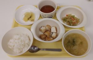 ※お野菜が苦手な子もいますが、今日もキャベツのごま和えを頑張って食べていました。少しずつ食べられるようになれたら良いと思います。