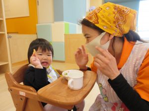 まだ1歳児クラスのイチゴ組さんが2人だけですが、元気いっぱいです(^^)/
