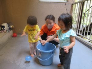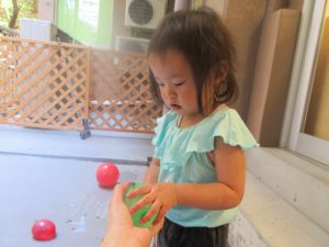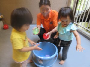 そして、ちょっと早いですがとても暑かった日に水風船で遊びました