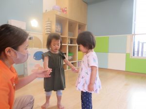 「さんぽ」の曲が好きで、流れると保育者の手を取って歩こう!と誘ってきます(^^)