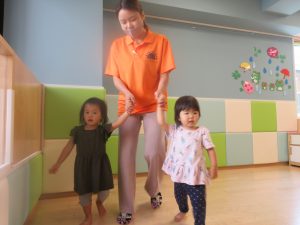 お友達同士でも手を繋いで歩けるように挑戦中です![]()