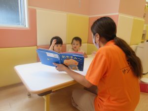 給食を食べ終えて寝る前にも絵本を読んでいます。