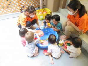夏ならではの遊びも今しかできないので、保育園では存分に楽しめるようにしています(^〇^)