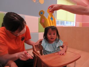 お誕生日を迎えたお友だちは前に呼ばれて冠を被りました![]()