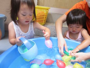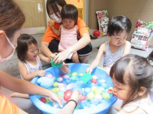 水遊びではたくさんの水風船で遊んだよ✨