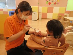 日中は暑くて、お散歩に行くと汗をかいていた子どもたち・・・