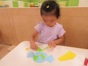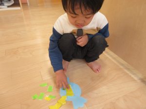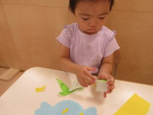 りんご組さんは、折り紙を自分でビリビリ破いてみました!
