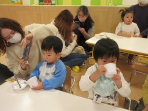 保育園でいつも歌っているおやつの歌を歌ったよ?
