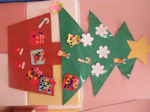 食べ終わった後は、クリスマスツリーの飾りを製作しました!