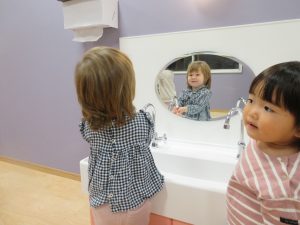 鏡で確認しながら踊る子も![]()