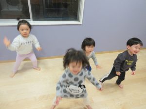 寒い毎日ですが、なるべく戸外に出て遊びたいと思いますが、室内で過ごす日も身体を動かせるようにしています![]()
