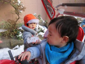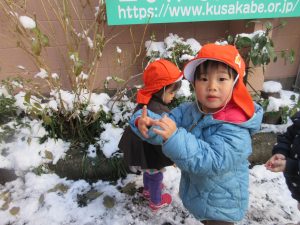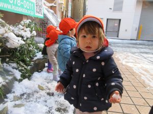 寒かったのですが、めったに見ることができない雪が積もったので少しだけ雪遊びをしましたよ?