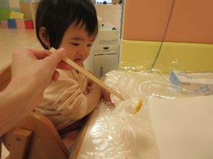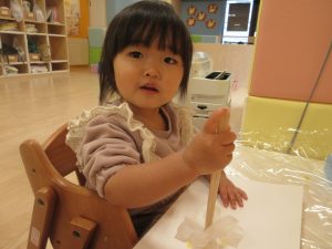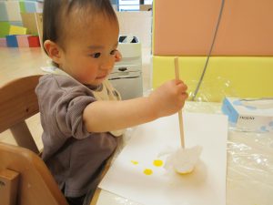 りんご組さんは絵の具で塗り絵を・・・