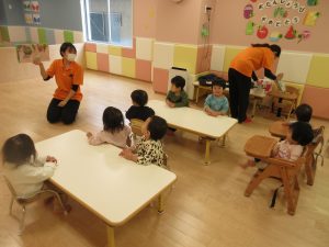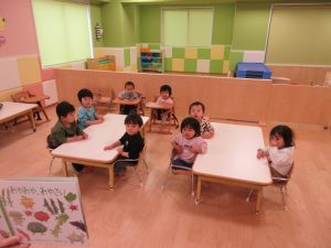 2022.02.16|お知らせ・イベント ?絵本読み聞かせプログラム? みなさん こんにちは(^^)/ 認可保育園 サンライズキッズ保育園 市川園です? たくさんお野菜たちが登場する絵本を見ました! 知っている食べ物はあったかな~? 前へ 次へ