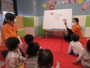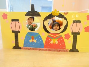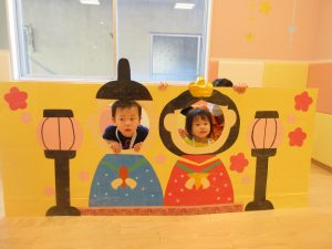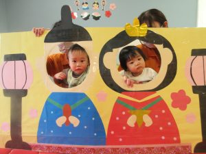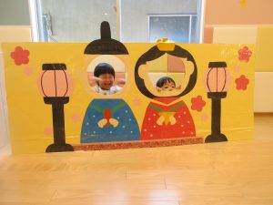 ひなまつり会では、ひなまつりの由来をスケッチブックシアターで見たり