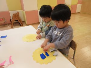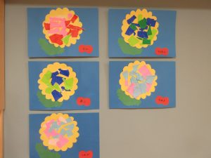 お花にシールを貼ってお顔を作りました![]()