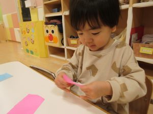 自分で折り紙をちぎったら
