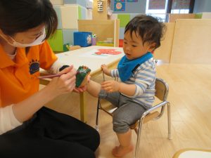 もも組さんはシール貼りと足形!