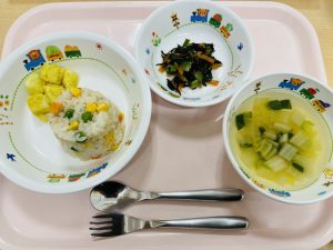 ツナコーンピラフ 白菜スープ ひじきのサラダ 粉ふき芋(カレー味)